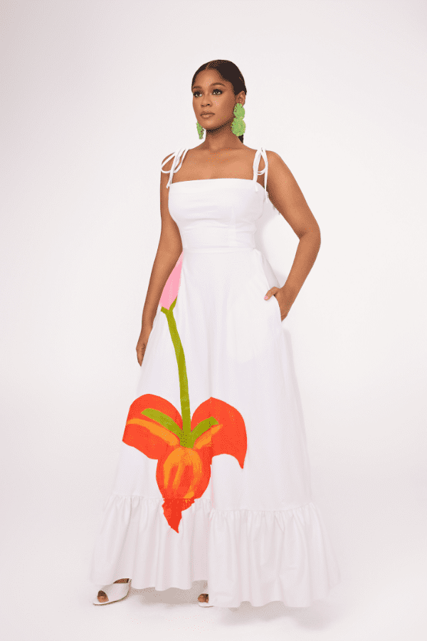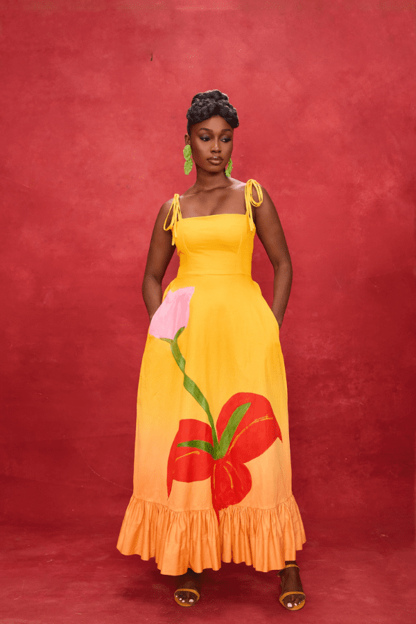 The Lillie Dress is a celebration of artisanal craftsmanship and effortless elegance. Made from premium mid-weight cotton fabric, this piece features an ombré hand-dye effect, available in two stunning color options: Yellow Ombré and White. The hand-painted flower motif adds a unique artistic touch, ensuring each dress is truly one-of-a-kind.