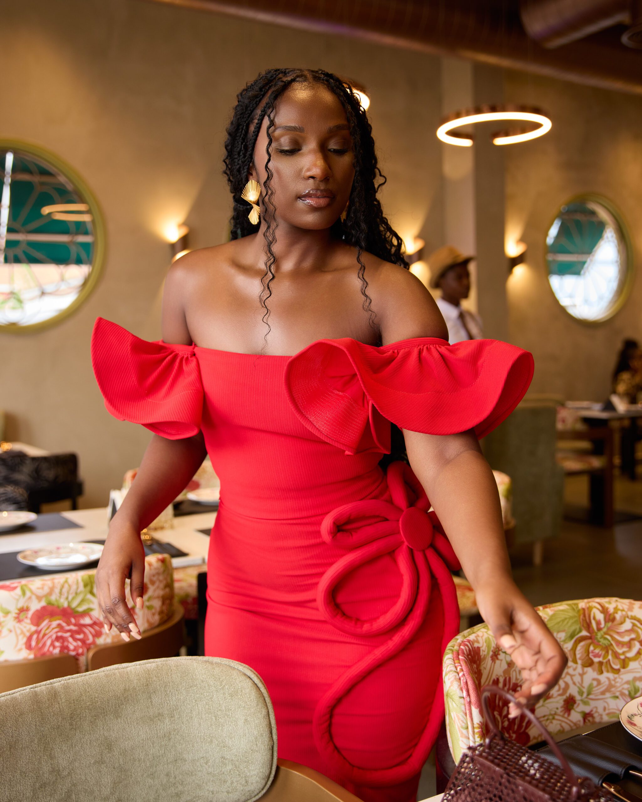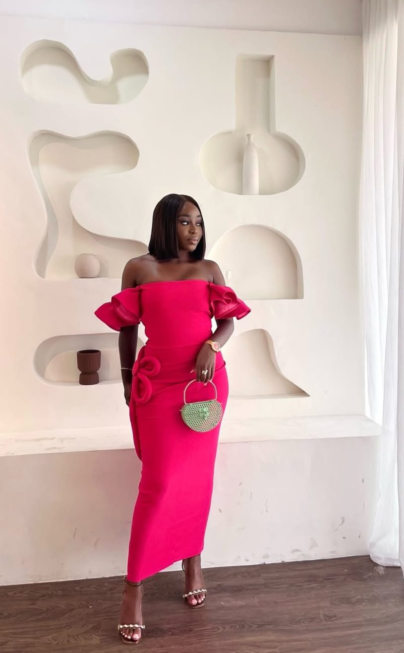 Sophie Sculptured Flower detail maxi set with Ruffle Sleeves