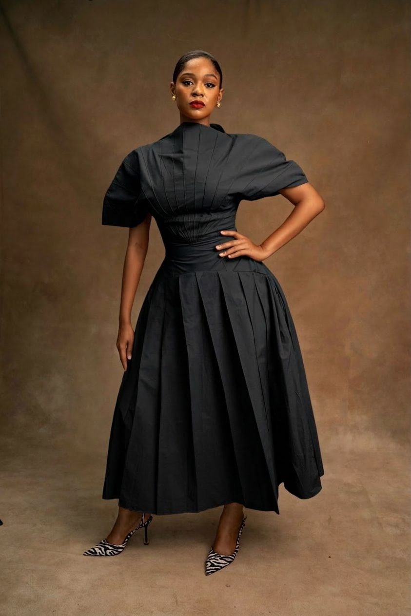 Designed for the modern wardrobe, the Taraji Dress brings a cinematic edge to everyday structure. Clean, architectural lines meet practical utility.
